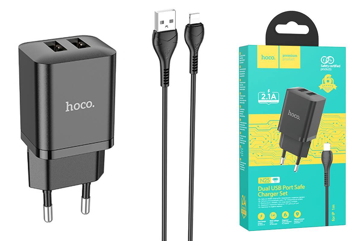 Сетевое зарядное устройство 2USB + кабель Lightning HOCO N25 Marker 2400mAh (черный)