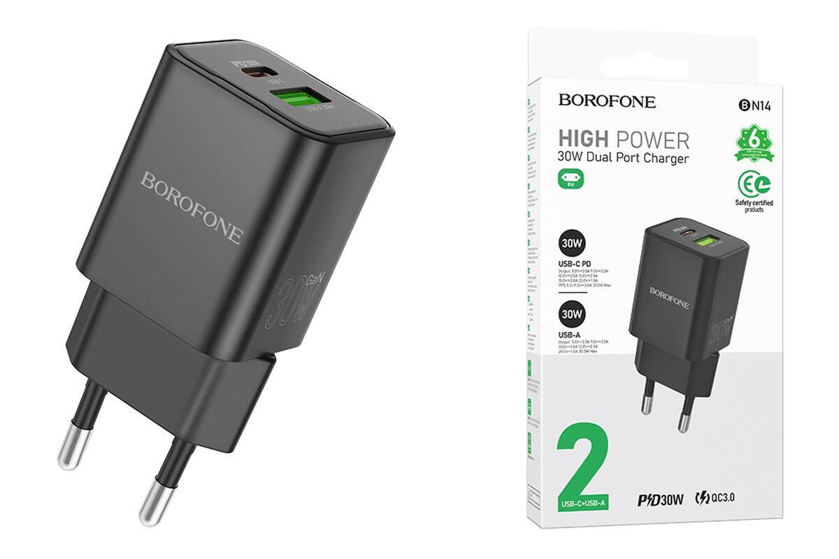 Сетевое зарядное устройство USB + USB-C BOROFONE BN14 PD30W+ QC3.0 (черный)
