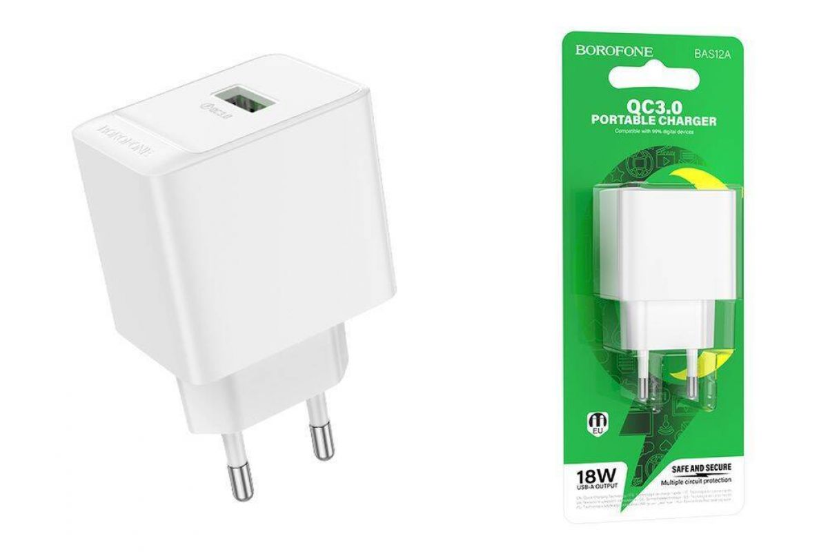 Сетевое зарядное устройство USB BOROFONE BAS12A Erudite QC 3.0 (белый)
