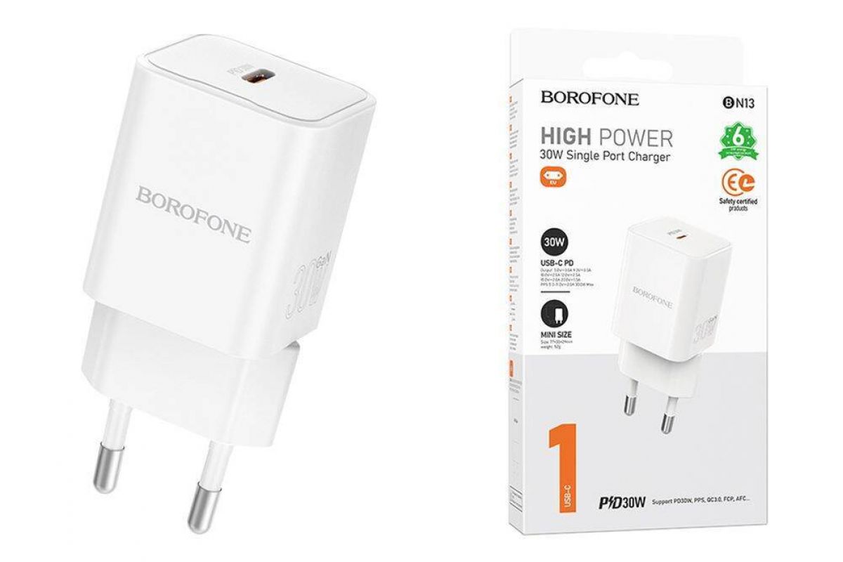 Сетевое зарядное устройство USB-C BOROFONE BN13 Safety PD30W (белый)