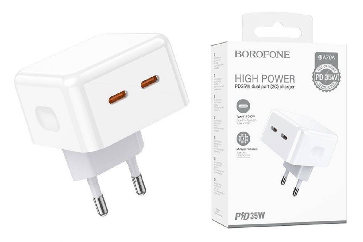 Сетевое зарядное устройство USB-C + USB-C BOROFONE BA76A PD 35W (белый)