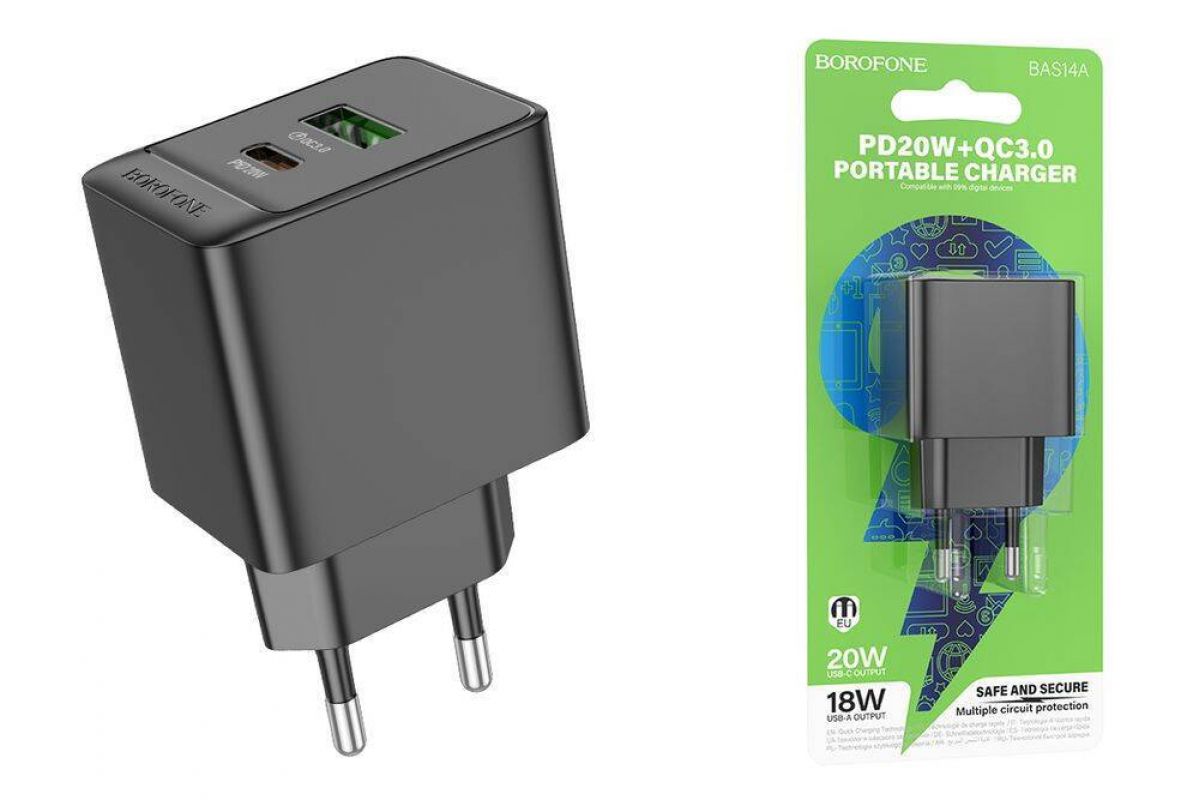 Сетевое зарядное устройство USB + USB-C BOROFONE BN14 PD30W+ QC3.0 (черный)