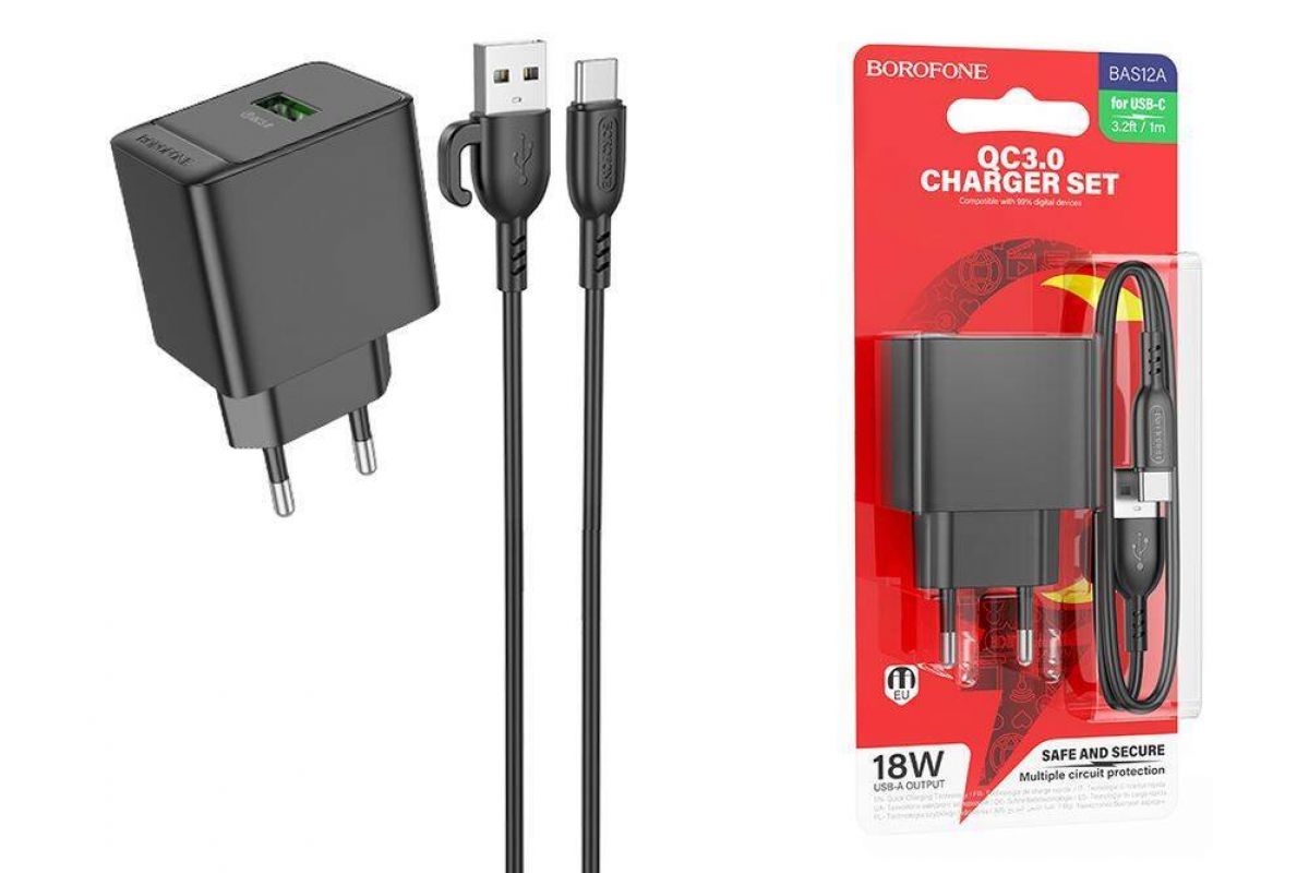 Сетевое зарядное устройство USB + кабель Type-C BOROFONE BAS12A Erudite QC3.0 (черный)