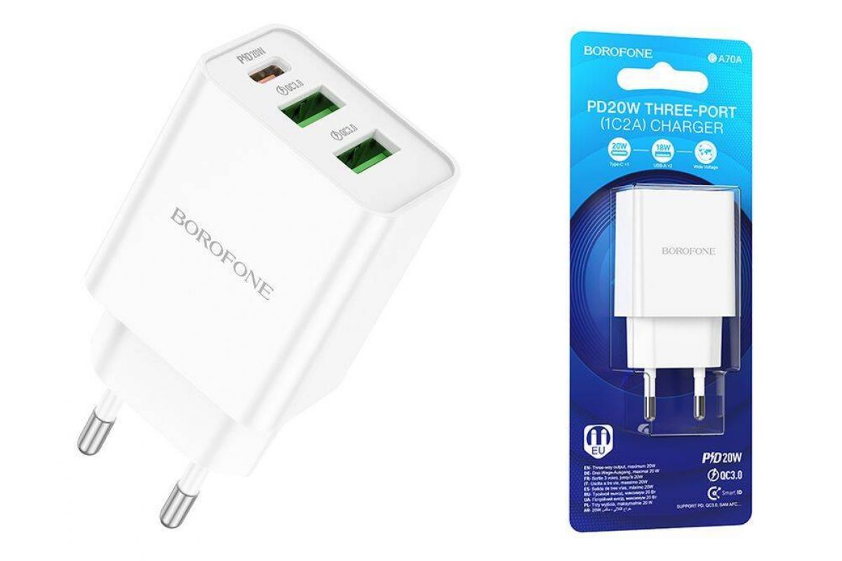 Сетевое зарядное устройство 2USB + USB-C BOROFONE BA70A Quick PD20W + QC3.0 (белый)