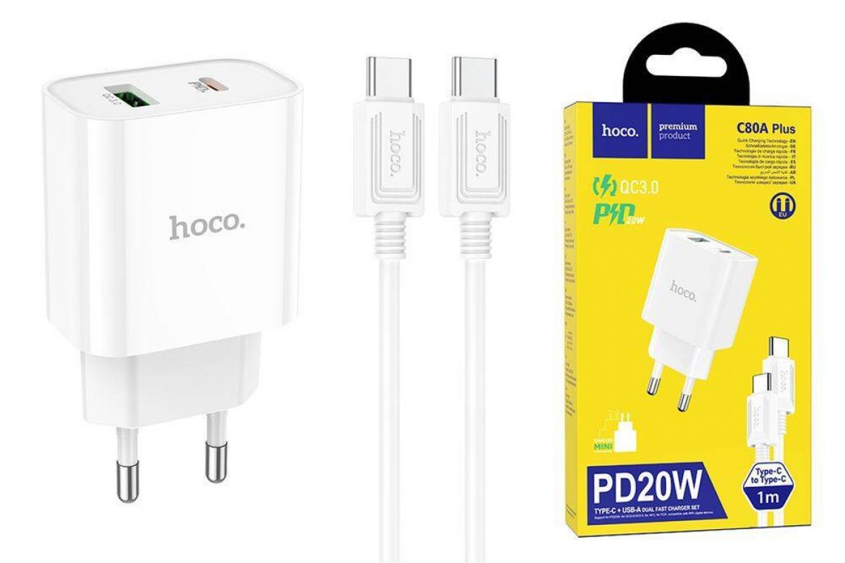 Сетевое зарядное устройство USB+USB-C+ кабель Type-C HOCO C80A Plus Rapido PD20W + QC 3.0 (белый)