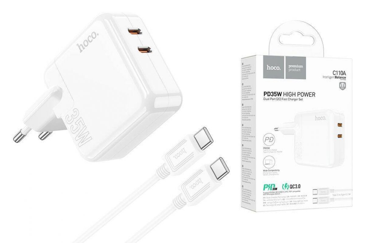 Сетевое зарядное устройство 2USB-C + кабель Type-C-Type-C HOCO C110A Luckyl PD35W + QC3.0 (белый)
