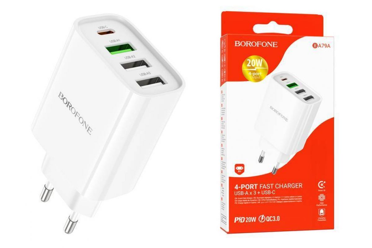 Сетевое зарядное устройство 3USB + USB-C BOROFONE BA79A QC3.0 + PD20W