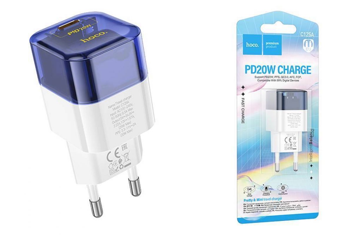 Сетевое зарядное устройство USB-C HOCO C125A PD 20W (прозрачный синий)