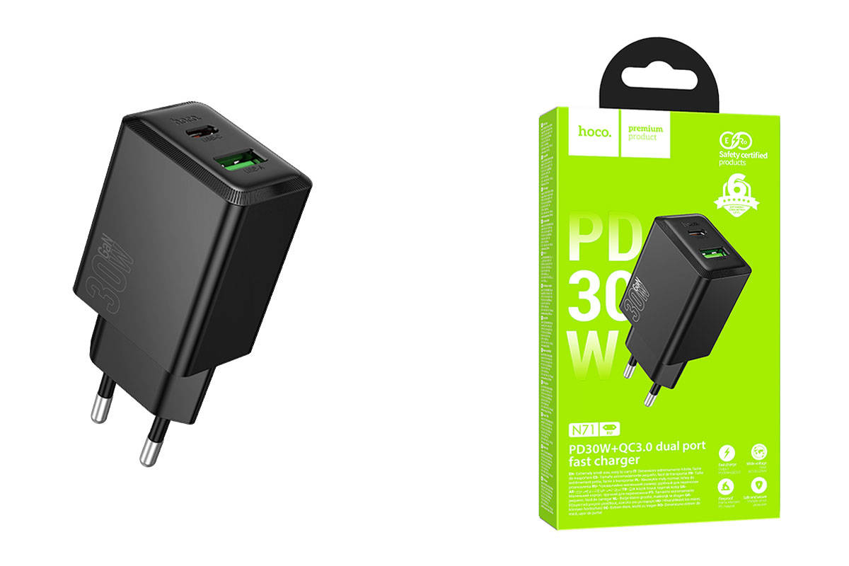 Сетевое зарядное устройство USB + USB-C HOCO N71 Nuevo PD30W+QC3.0 (черный)