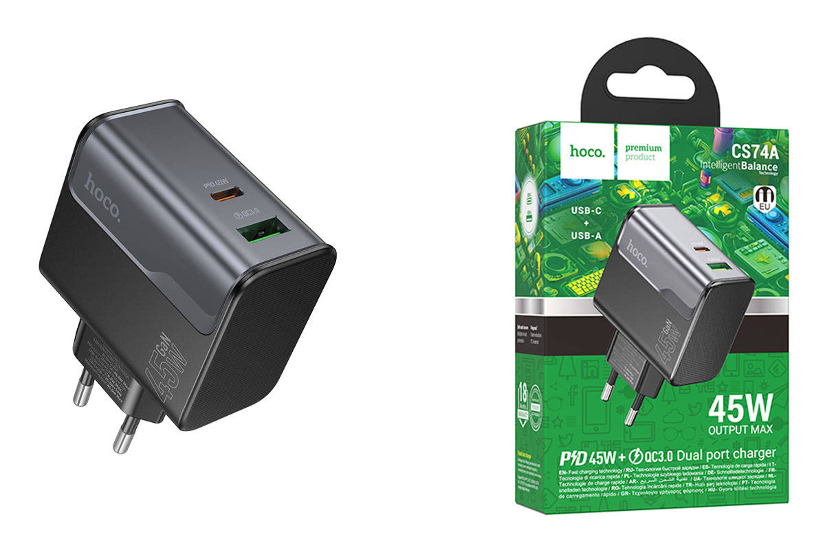 Сетевое зарядное устройство USB + USB-C HOCO CS74A Star Speed PD45W+QC3.0 (черная полночь)