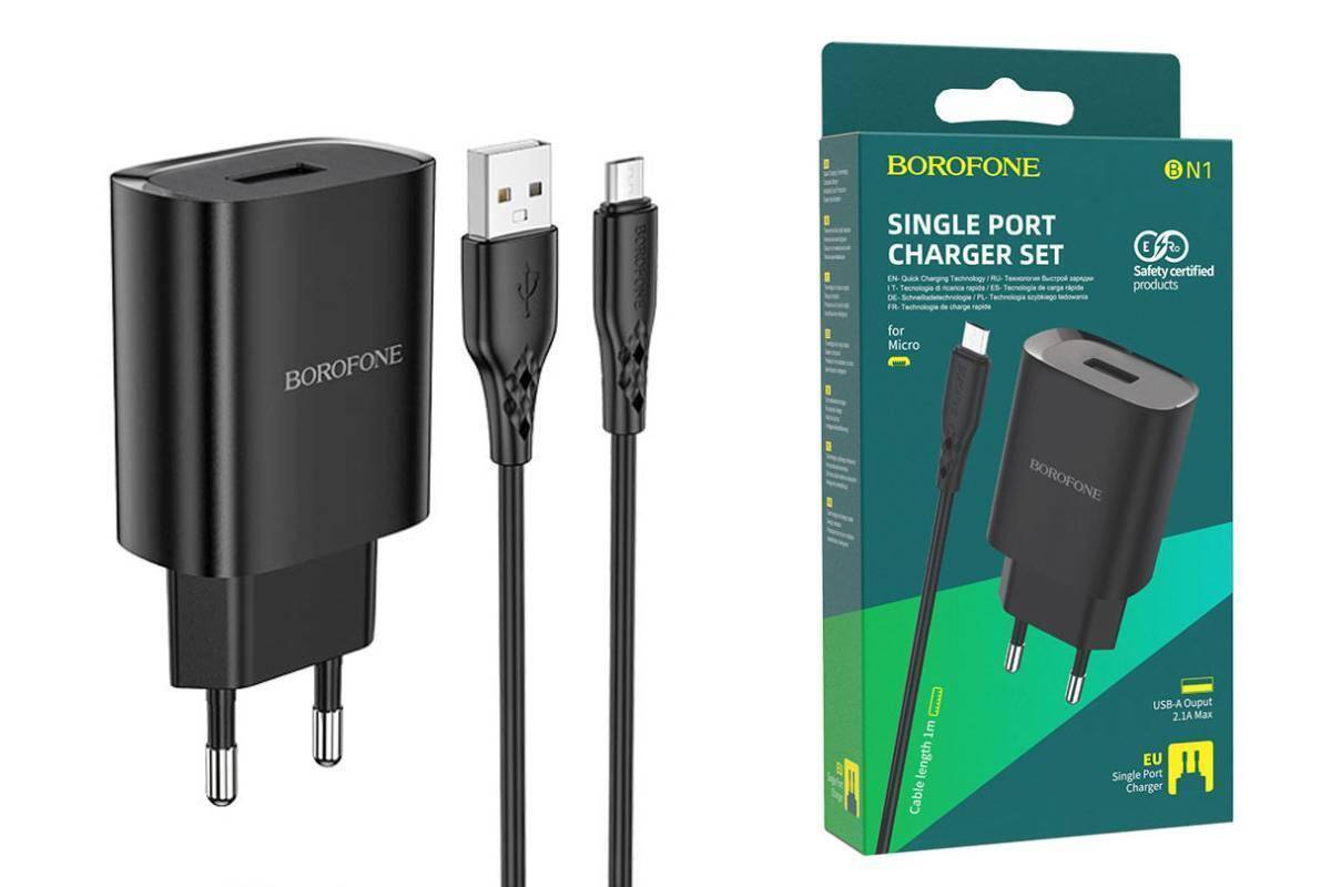 Сетевое зарядное устройство USB + кабель MicroUSB BOROFONE BN1 Innovative 2100mAh (черный)
