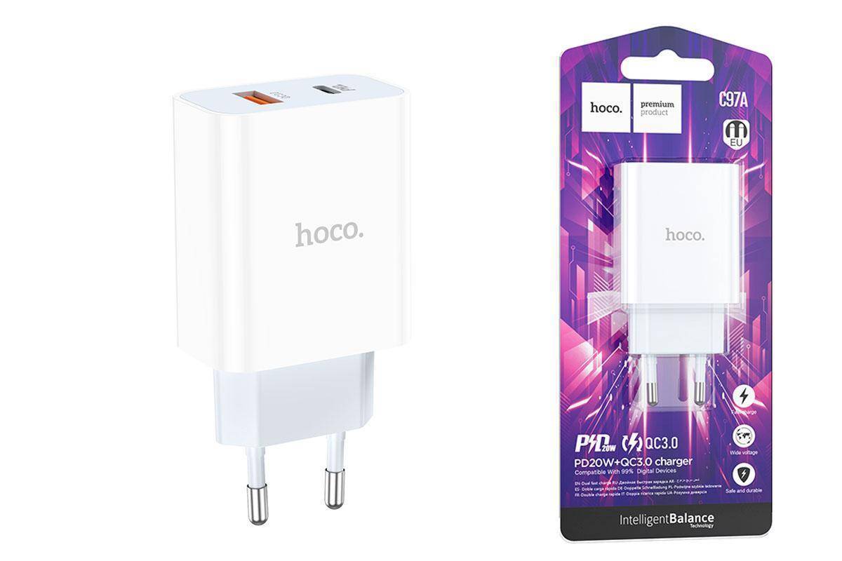 Сетевое зарядное устройство USB + USB-C HOCO C97A PD20W+ QC3.0 (белый)