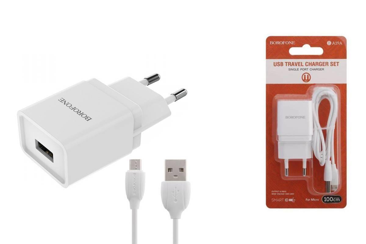 Сетевое зарядное устройство USB + кабель MicroUSB BOROFONE BA19A Nimble 1000mAh (белый)