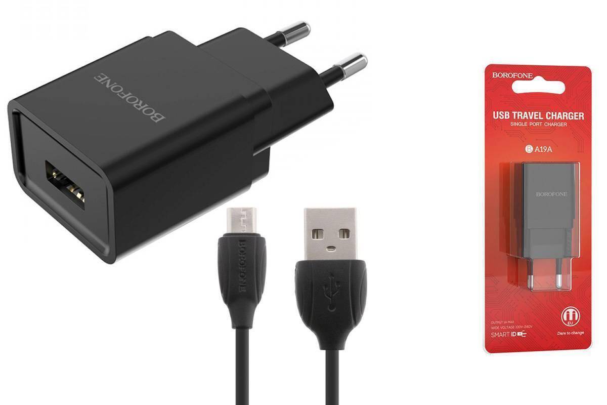 Сетевое зарядное устройство USB + кабель MicroUSB BOROFONE BA19A Nimble 1000mAh (черный) Сетевое зарядное устройство USB + кабель MicroUSB BOROFONE BA19A Nimble 1000mAh (черный)