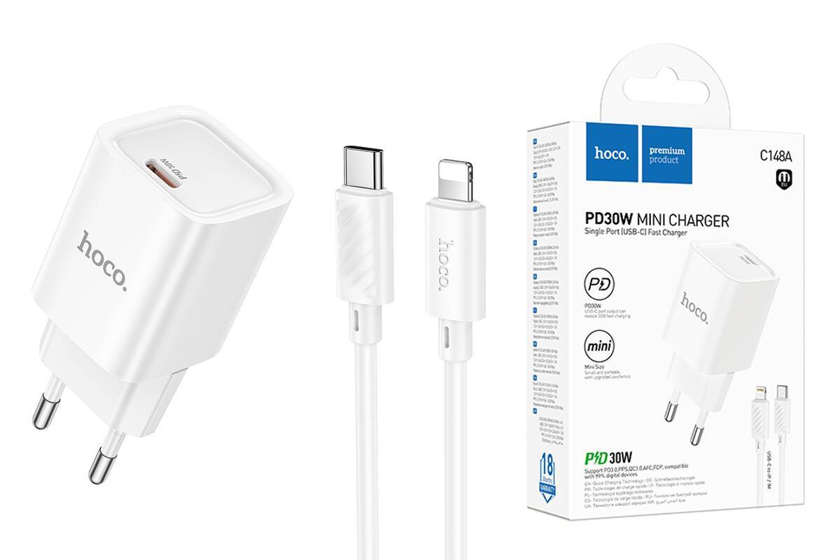 Сетевое зарядное устройство USB-C + кабель Lightning - Type-C HOCO C148A Charm charger PD30W (белый)