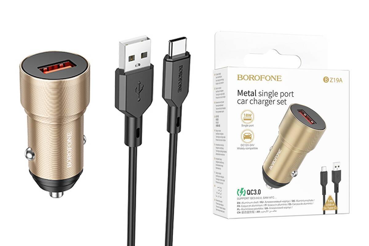 Автомобильное зарядное устройство АЗУ USB + кабель Type-C Borofone BZ19A QC3.0 (золотой)