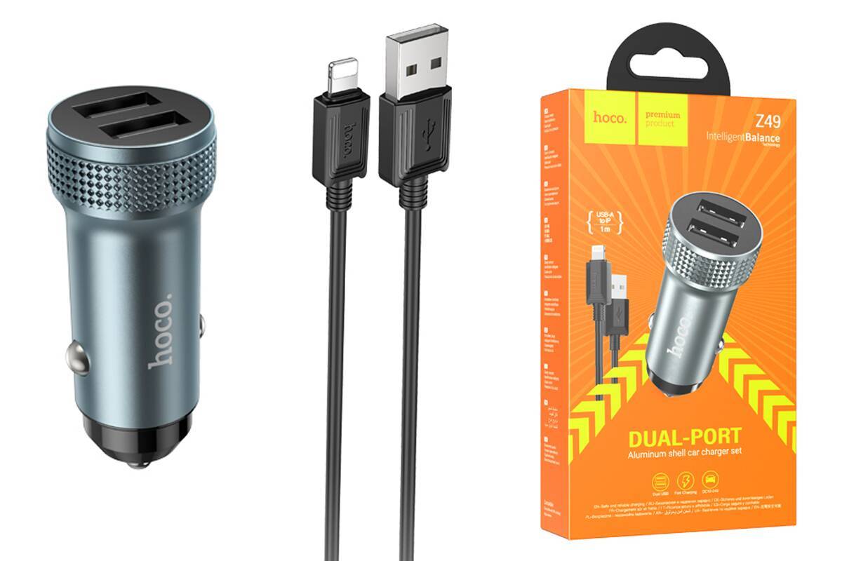 Автомобильное зарядное устройство АЗУ 2USB + кабель Lightning HOCO Z49 Level (серый)