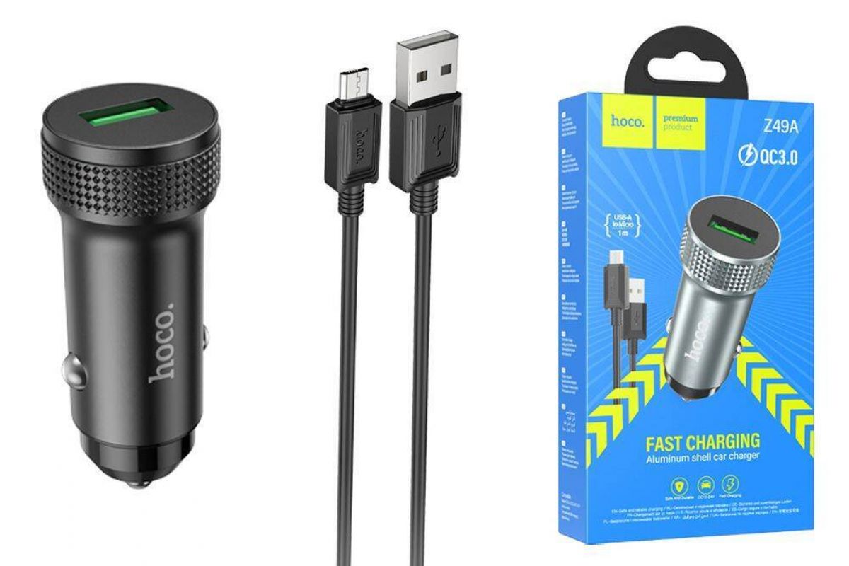 Автомобильное зарядное устройство АЗУ USB + кабель MicroUSB HOCO Z49A Level QC3.0 (черный)