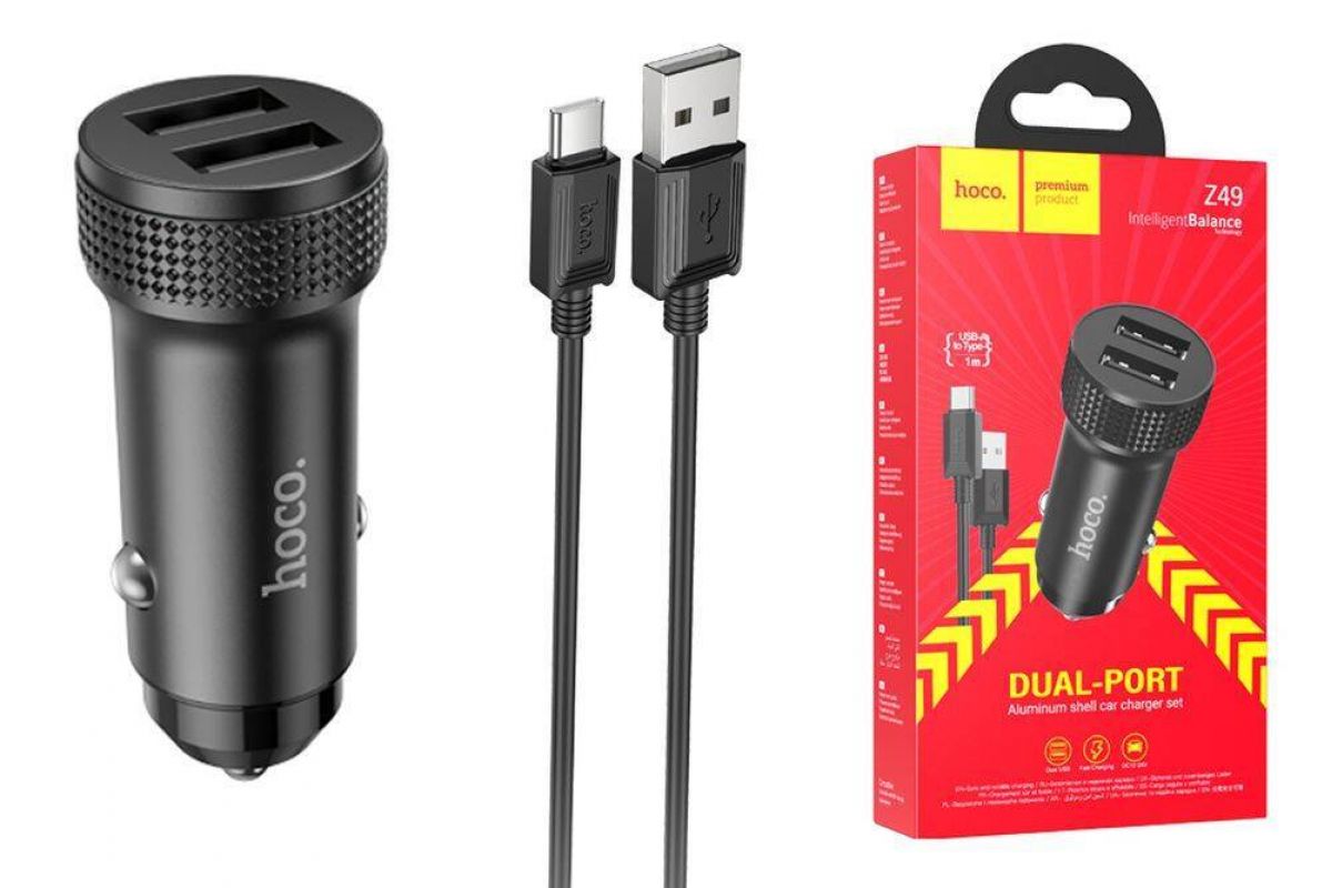 Автомобильное зарядное устройство АЗУ 2USB + кабель MicroUSB HOCO Z49 (черный)
