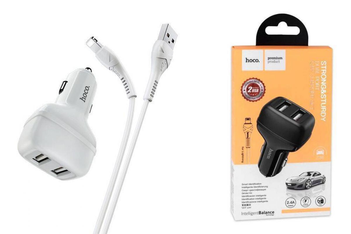 Автомобильное зарядное устройство АЗУ 2USB + кабель Lightning HOCO Z36 2100mAh (белый)