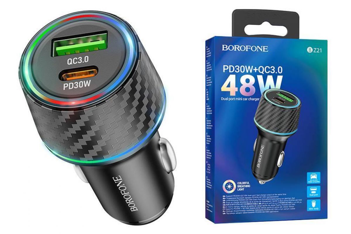 Автомобильное зарядное устройство АЗУ USB + USB-C BOROFONE BZ21 PD 48W + QC3.0 (черный)