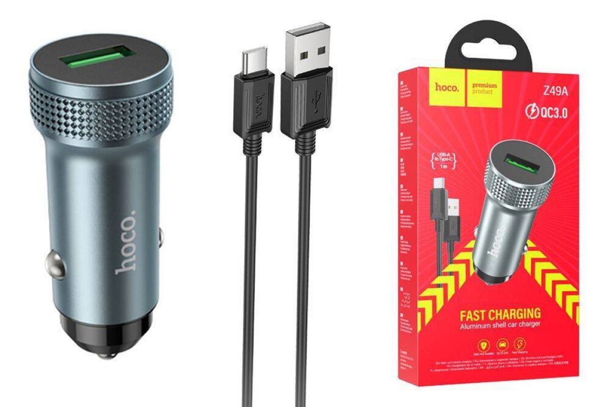 Автомобильное зарядное устройство АЗУ USB + кабель Type-C HOCO Z49A Level QC3.0 (серый)