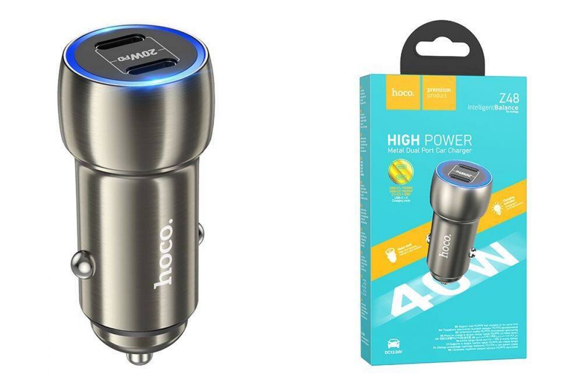 Автомобильное зарядное устройство АЗУ 2USB-C HOCO Z48 Tough 40W (серый)