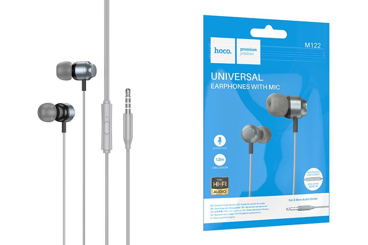 Наушники вакуумные проводные HOCO M122 Power metal universal earphones with microphone (серый)