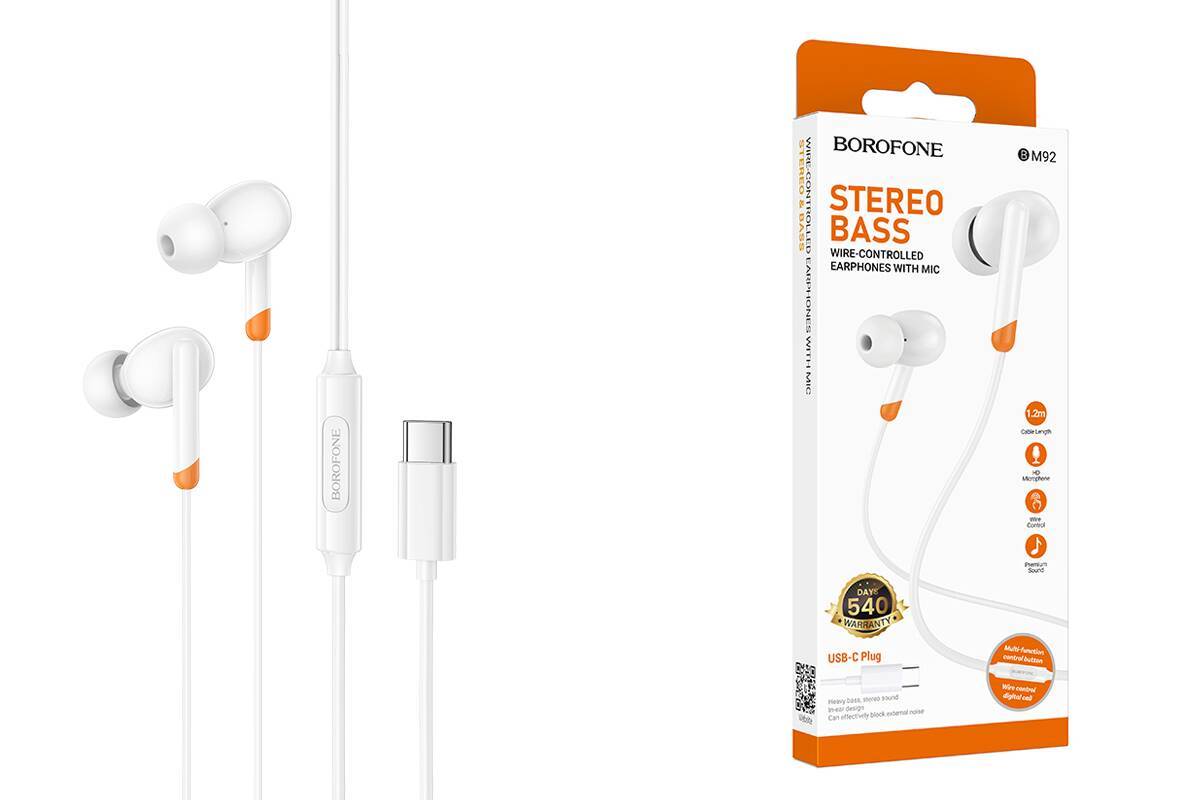 Наушники вакуумные проводные BOROFONE BM92 штекер Type-C ( белый)