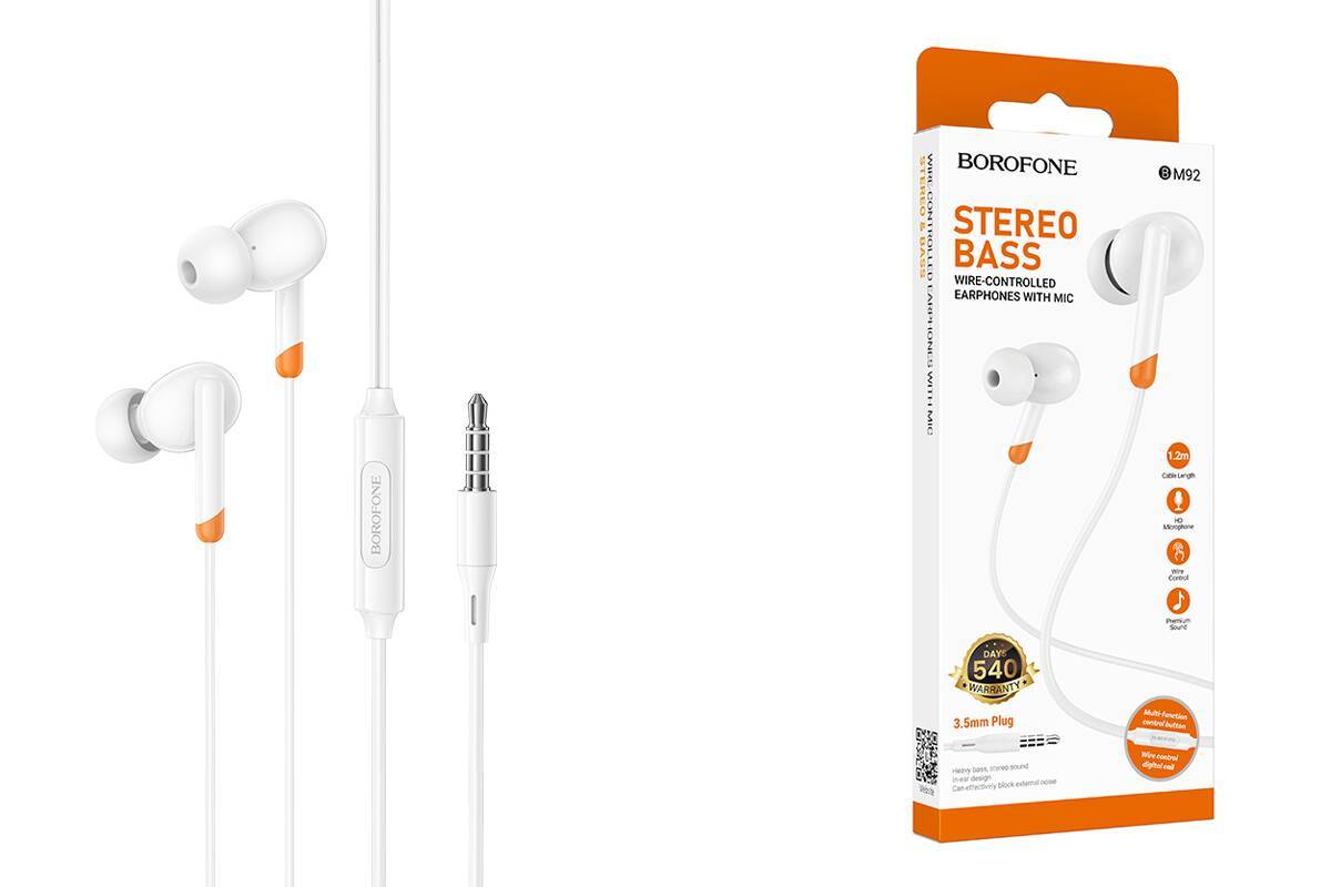 Наушники вакуумные проводные BOROFONE BM92 Refined (белый)