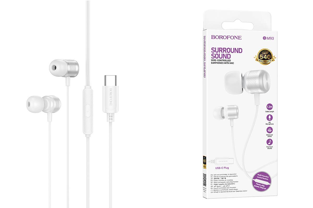 Наушники вакуумные проводные BOROFONE BM93 Platinum штекер Type-C ( серебристый)
