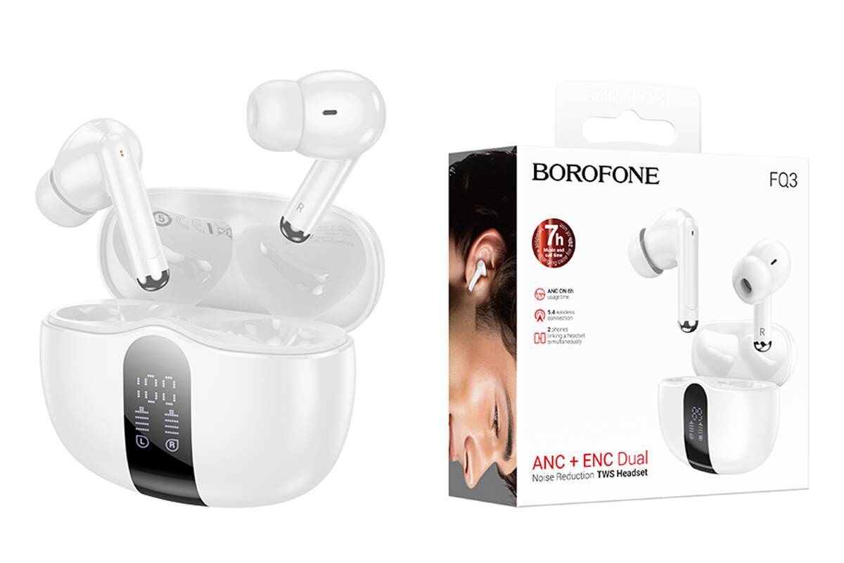 Наушники вакуумные беспроводные BOROFONE FQ3 Soulmate ANC+ENC Noise Reduction BT headset Bluetooth (белый)