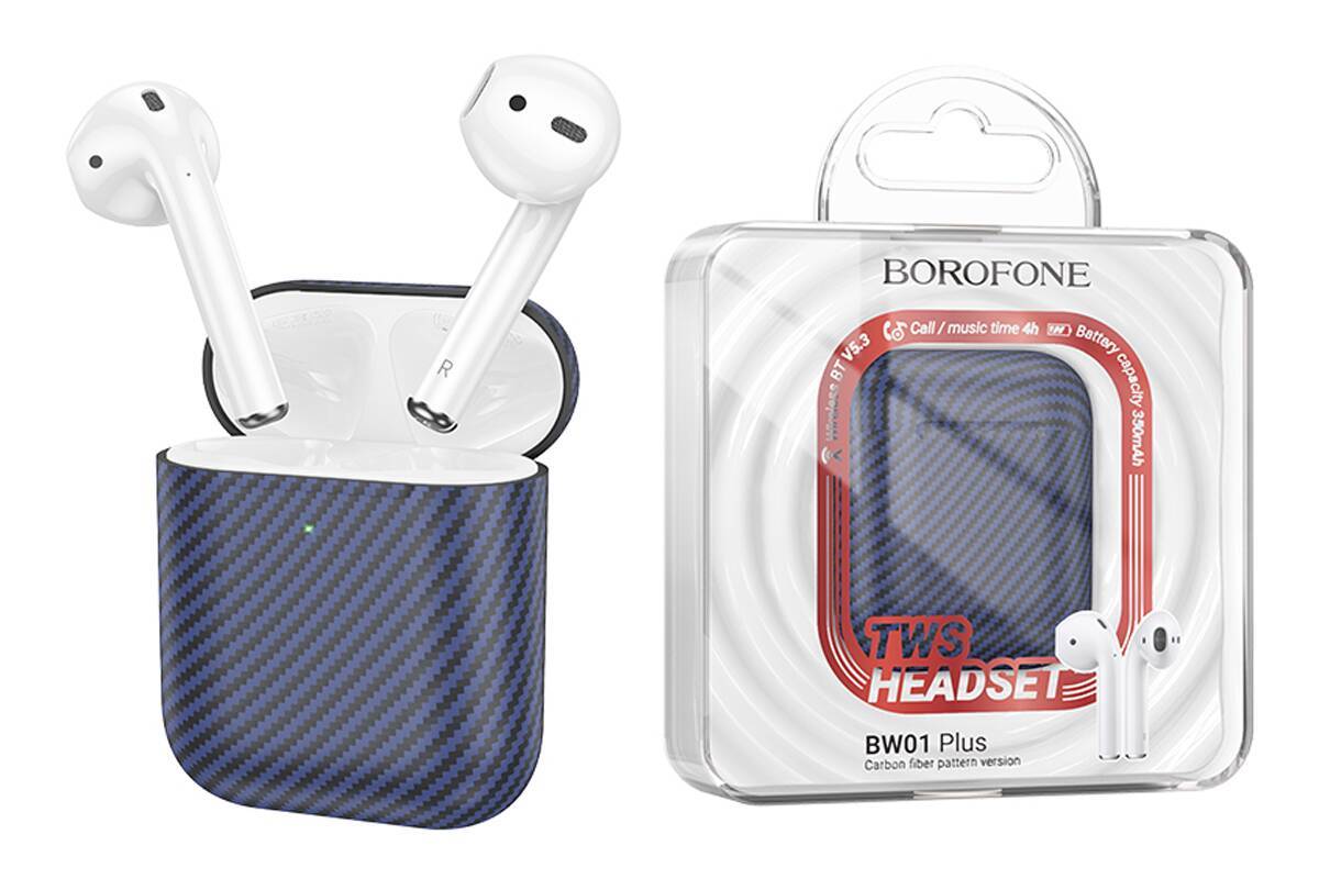 Наушники вакуумные беспроводные BOROFONE BW01 Plus True wireless stereo headset(carbon fiber pattern version) (синий)