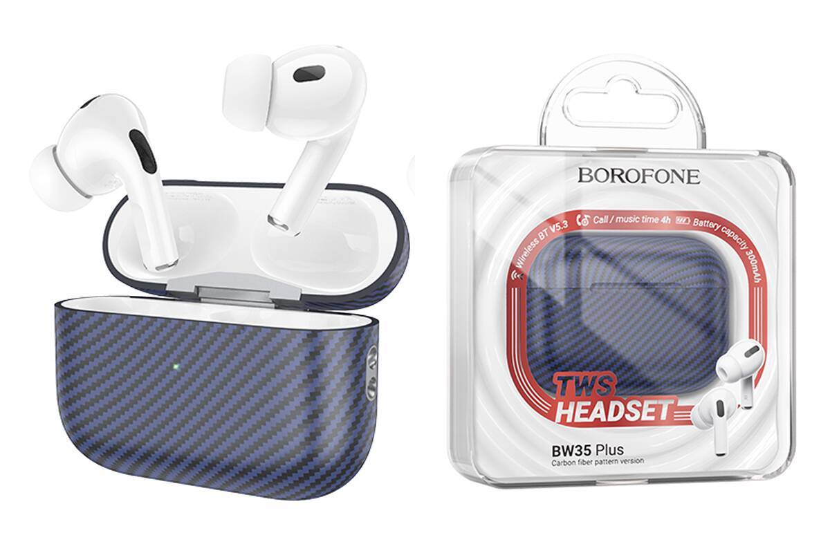 Наушники вакуумные беспроводные BOROFONE BW35 Plus True wireless stereo headset(carbon fiber pattern version) (синий)