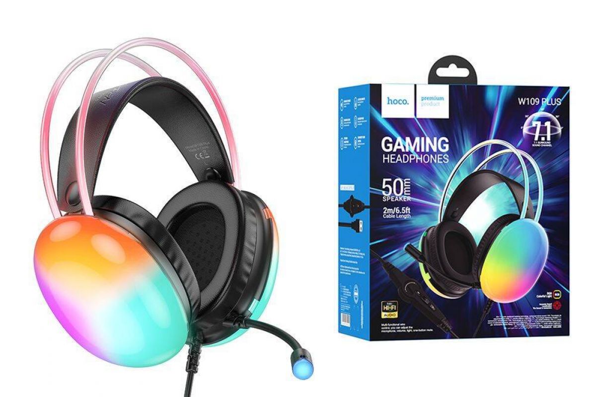 Наушники мониторные проводные HOCO W109 Plus Rich headphones (3.5 мм/USB7.1) (черные)