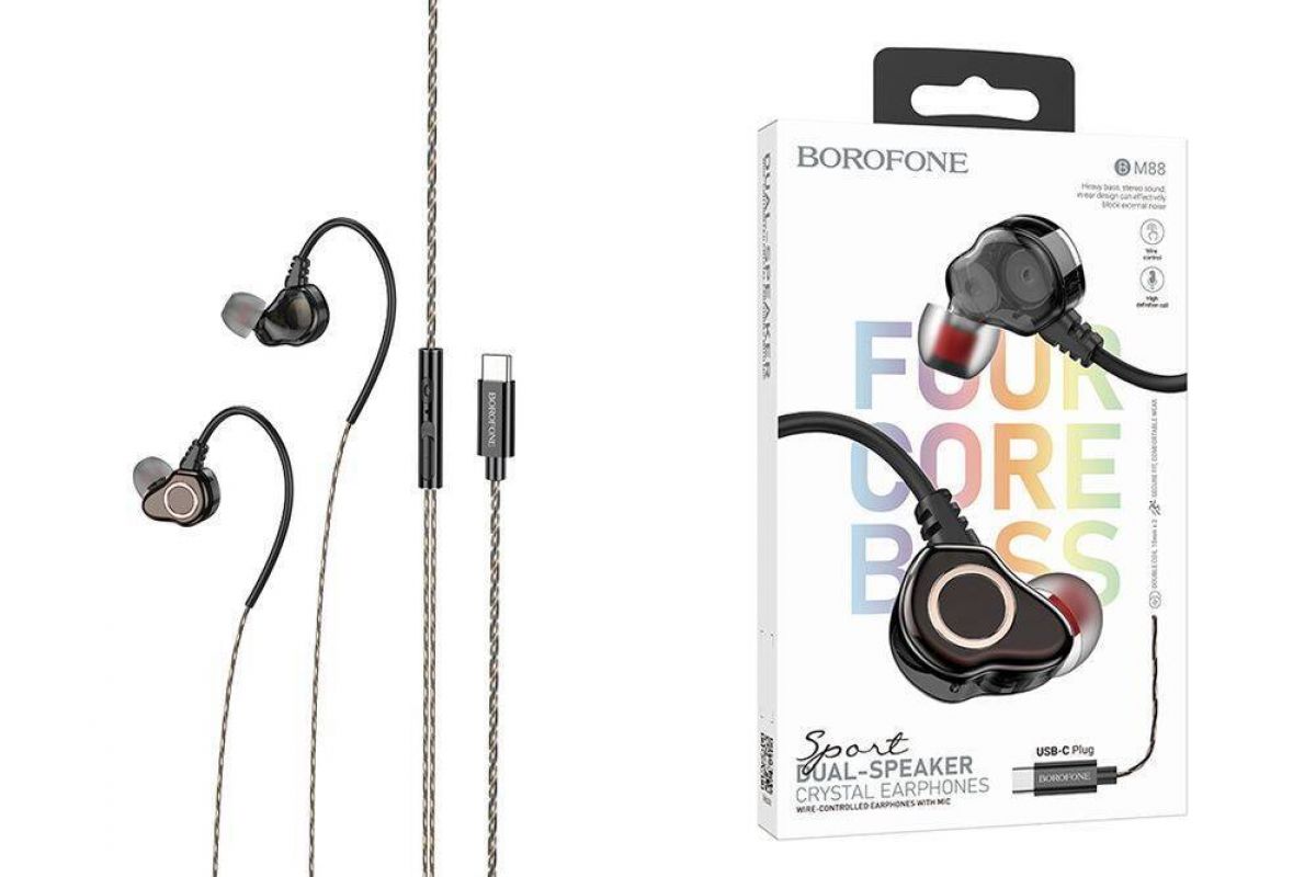 Наушники вакуумные проводные BOROFONE BM88 разъем Type-C (черный)