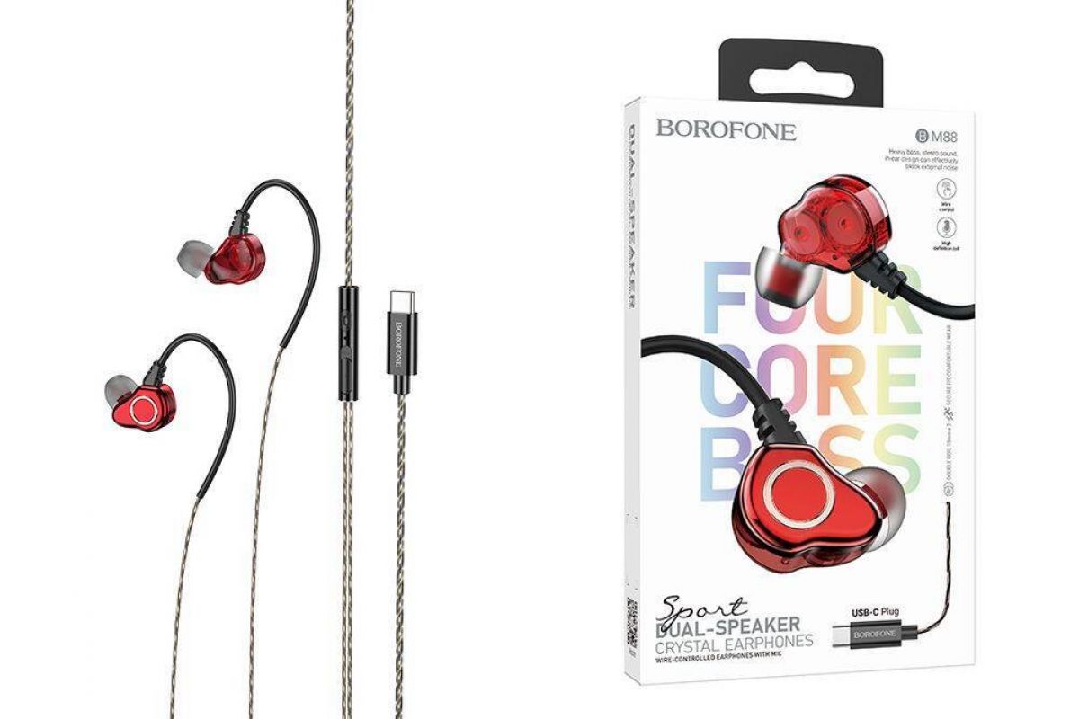Наушники вакуумные проводные BOROFONE BM88 разъем Type-C (красный)