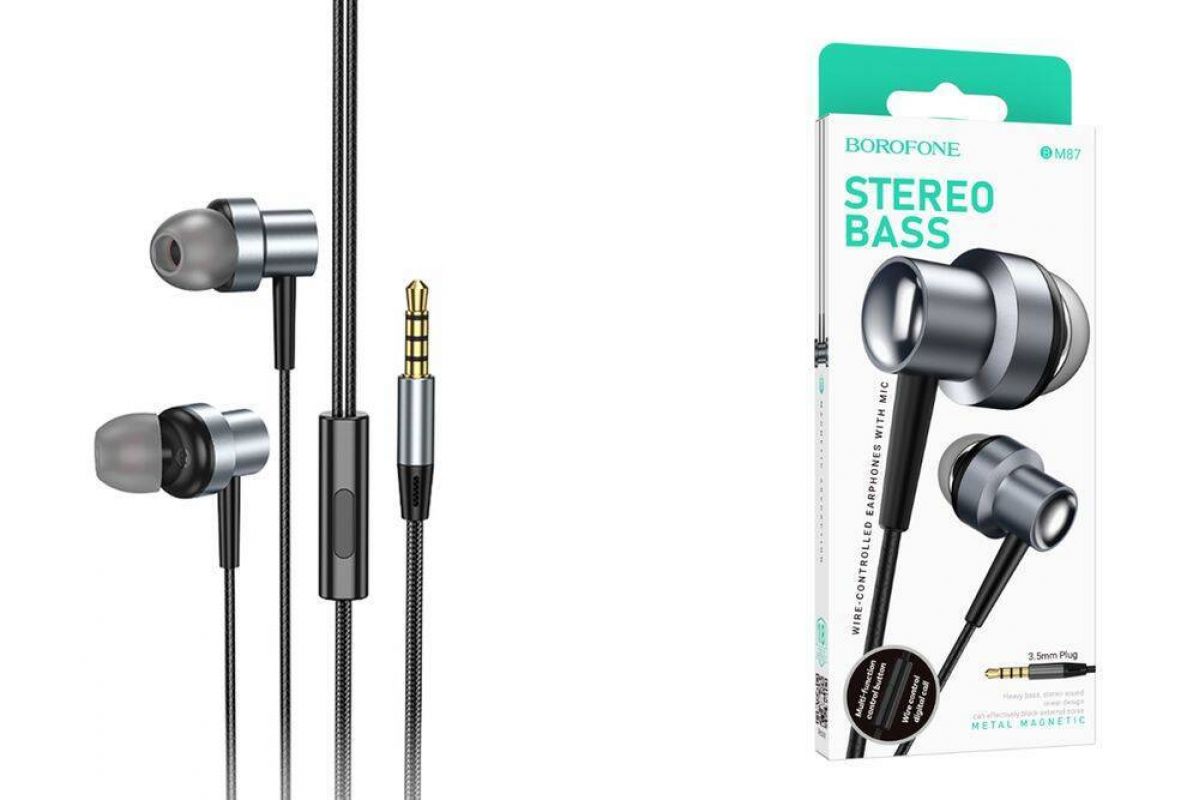 Наушники вакуумные проводные BOROFONE BM87 Element metal (серый)
