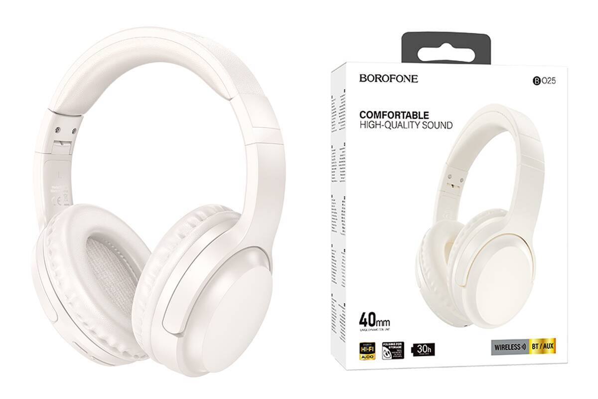 Наушники мониторные беспроводные BOROFONE BO25 Rhyme wireless headset Bluetooth (молочный белый)