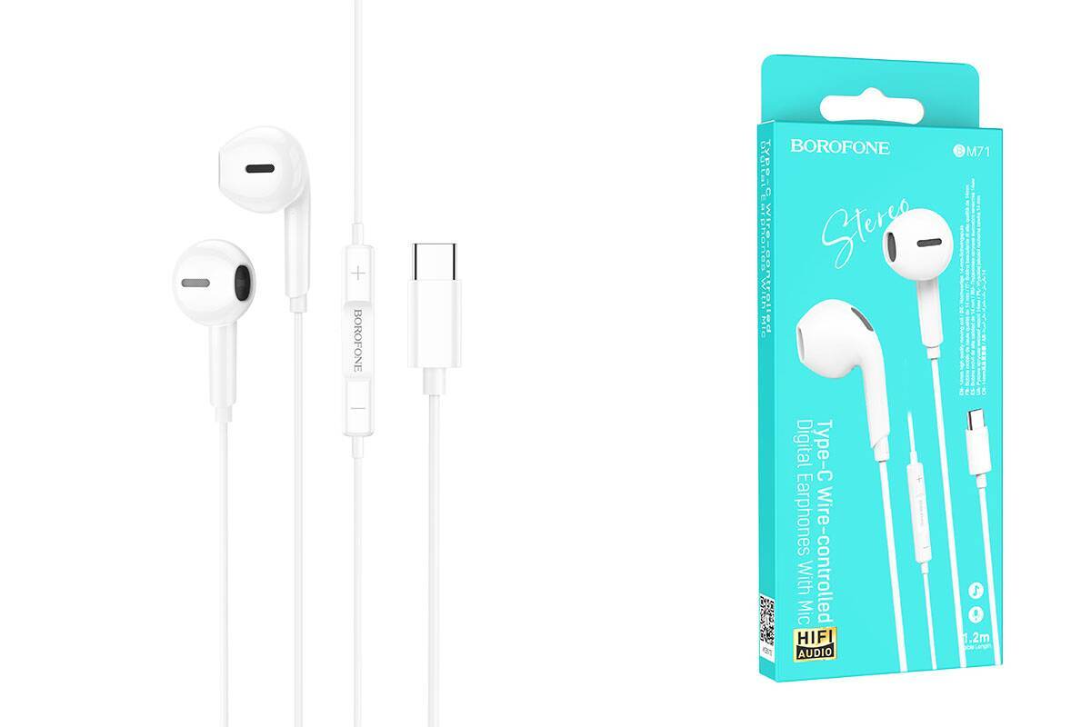Наушники вакуумные проводные BOROFONE BM71 разъем Type-C (белый)