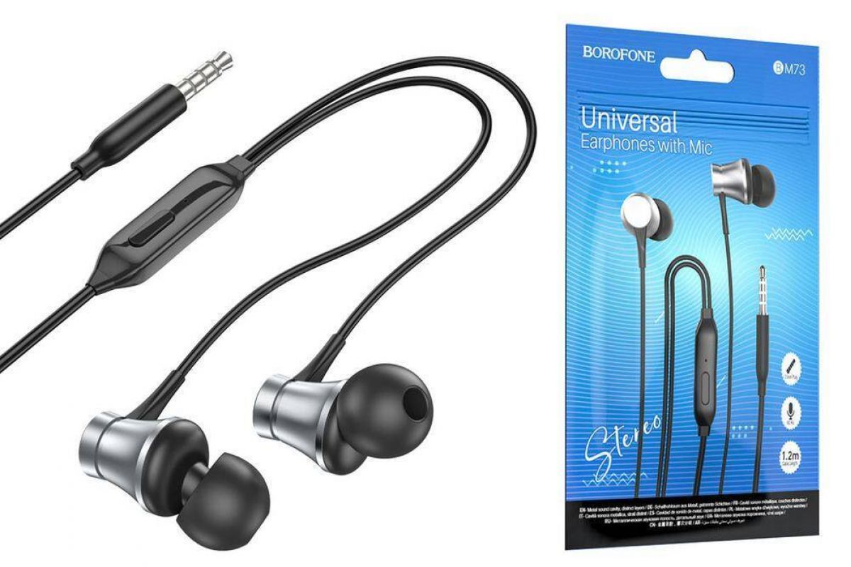 Наушники вакуумные проводные BOROFONE BM73 (серебристый) упаковка Zip Lock
