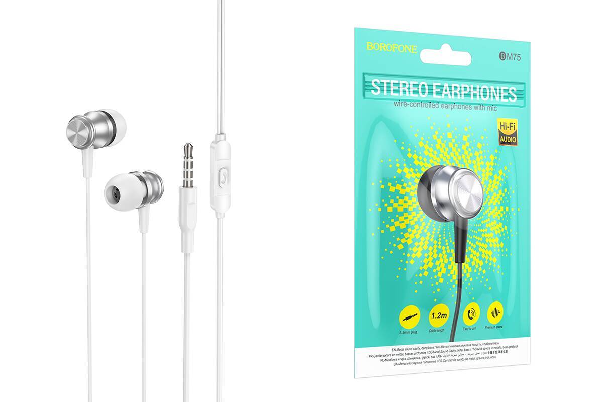 Наушники вакуумные проводные BOROFONE BM75 (серебристый)