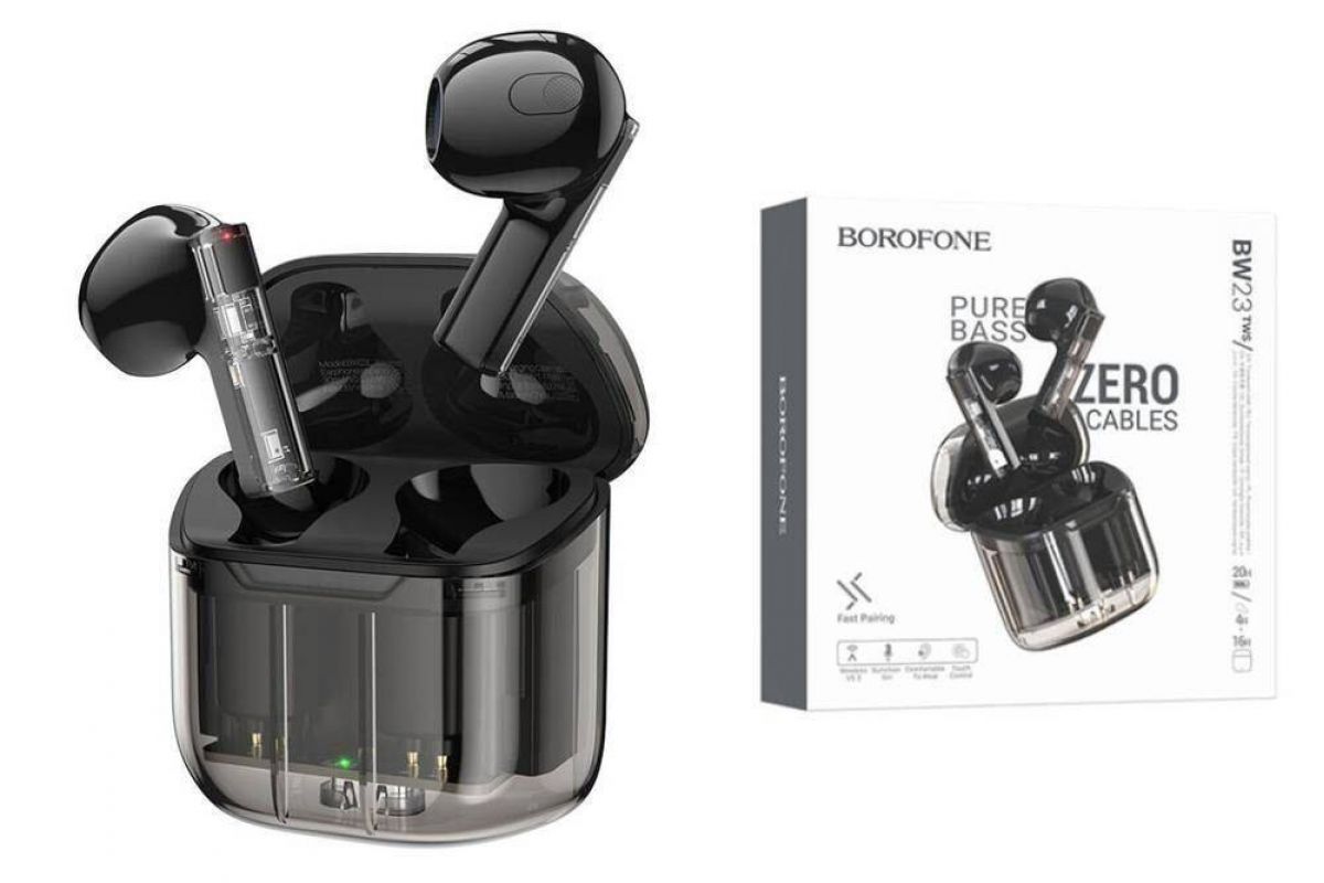 Наушники вакуумные беспроводные BOROFONE BW23 Crystal bean Transparent Edition true wireless BT headset (черный)