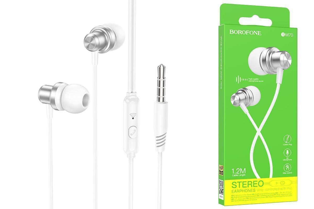 Наушники вакуумные проводные BOROFONE BM70 Rich sound (серебристый)