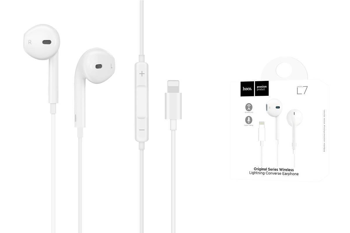 Наушники вакуумные проводные HOCO L7 Plus Original series штекер Lightning (белый)
