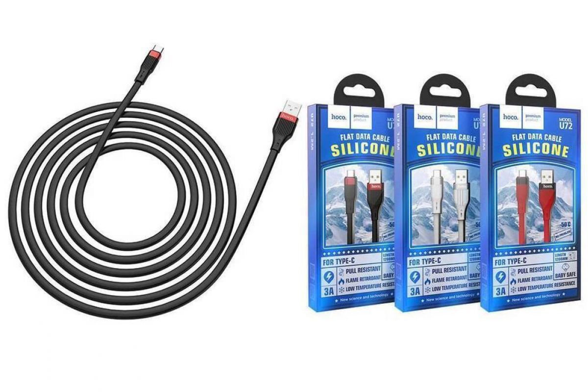Кабель USB - USB Type-C HOCO U72, 3A (черный) 1м (силиконовый) Кабель USB - USB Type-C HOCO U72, 3A (черный) 1м (силиконовый)