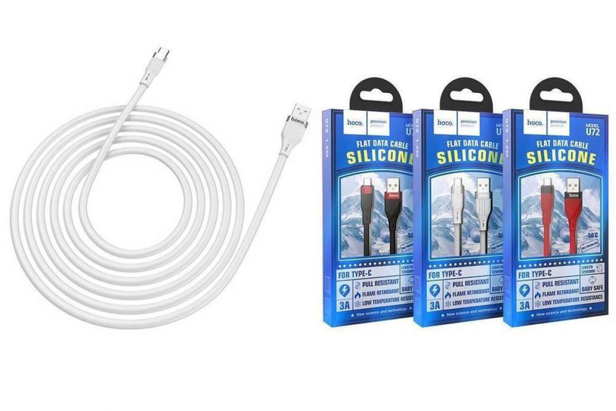 Кабель USB - USB Type-C HOCO U72, 3A (белый) 1м (силиконовый)