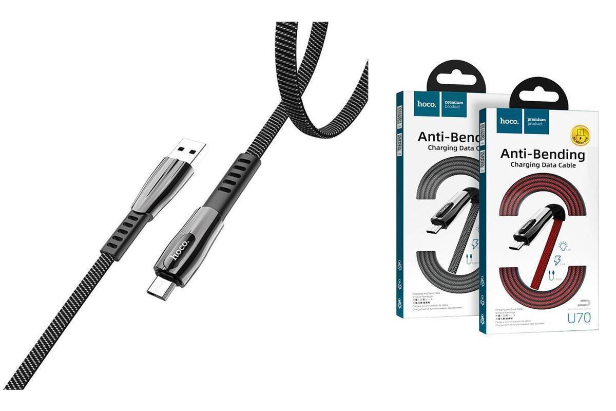 Кабель USB - MicroUSB HOCO U70 2,4A (серый) 1,2м (в оплетке)