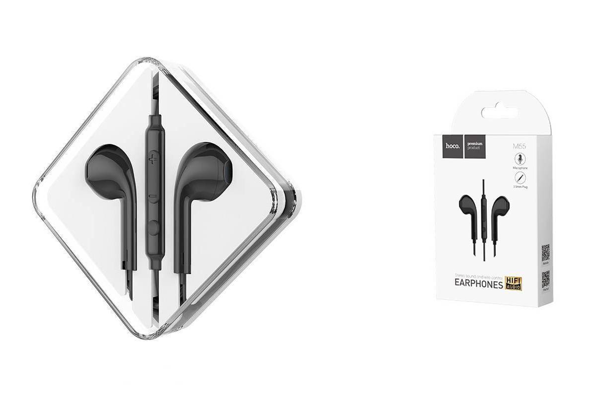 Наушники вакуумные проводные HOCO M55 Memory sound wire control earphones with mic (черный)