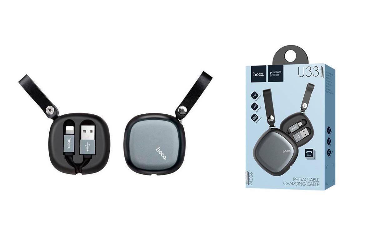 Кабель USB - MicroUSB HOCO U33 2A (черный) 1м (выдвижной)